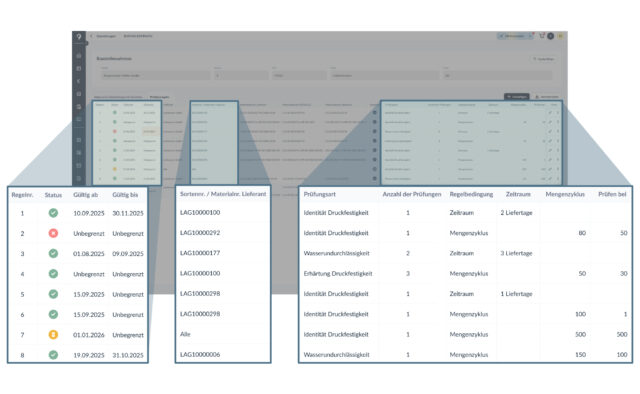 Der Prüfplan ergänzt unser Qualitätssicherungsmodul für Frischbeton und verbindet sich mit weiteren Bausteinen wie dem Bauteilsortenverzeichnis und dem digitalen Lieferschein.